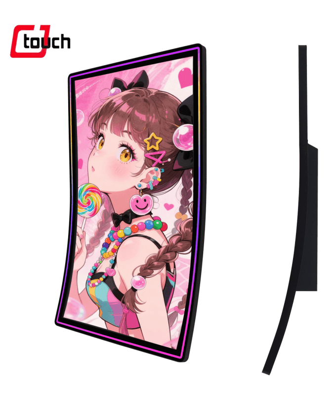 The CJTOUCH curved touchscreen monitor features a unique curved design (C-shape or J-shape optional), providing a wider field of view and a more immersive experience.